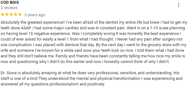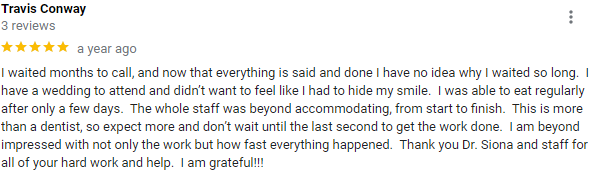 How do we do this? We employ the highest protocols and standards in every aspect of our work. We call it the Ohana Experience, and it starts with an attentive first visit on the phone and in-person. Then, the most up-to-date technologies and equipment allow us to put together an effective treatment plan with precision. Dr. Siona's expertise during the procedure ensures that even the most challenging case be treated with a long-term solution in mind.
